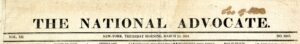 Perhaps the most telling item about the Jewish situation in America during this time period is a legal notice in The National Advocate, a New York City newspaper, on March 25, 1824. In what may well be the first time Hebrew typeface appears in an American newspaper.